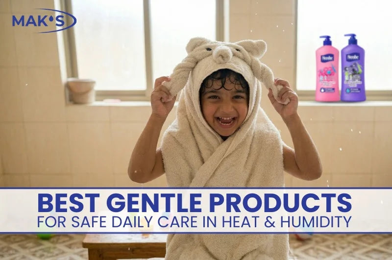 Learn how to prevent heat rash, manage sweat and dust with gentle sulphate free kids shampoo, 3 in 1 body wash, and baby soap from MAK’S. Keep your c