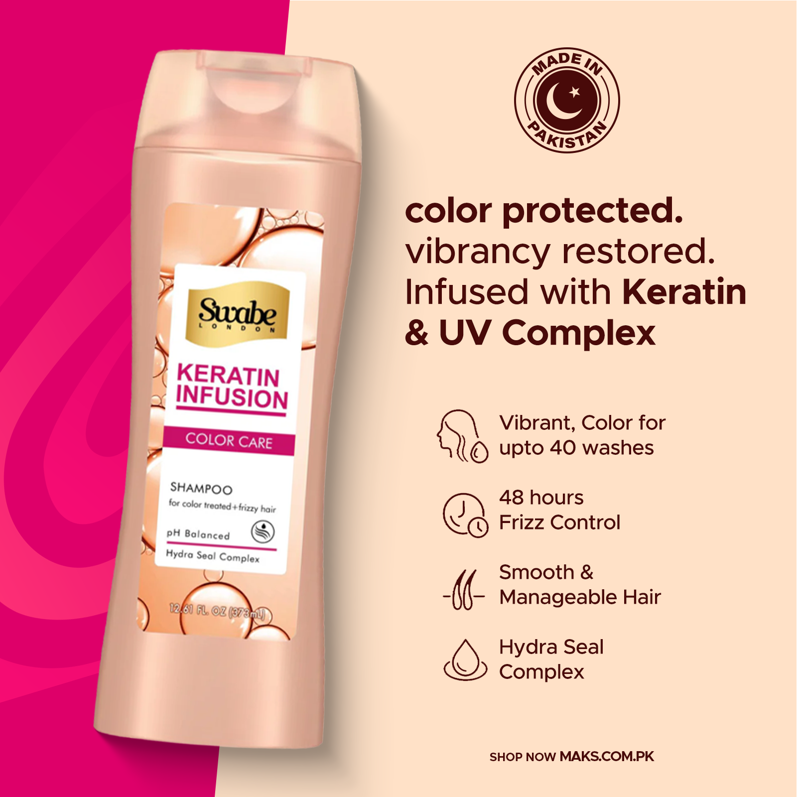 Protect your hair color while keeping frizz under control with Swabe Infusion Color Care Shampoo. Specially formulated for dyed or chemically treated hair, it gently cleanses without stripping color. The Hydro Seal Complex locks in moisture, boosts shine, and keeps your color vibrant for longer.