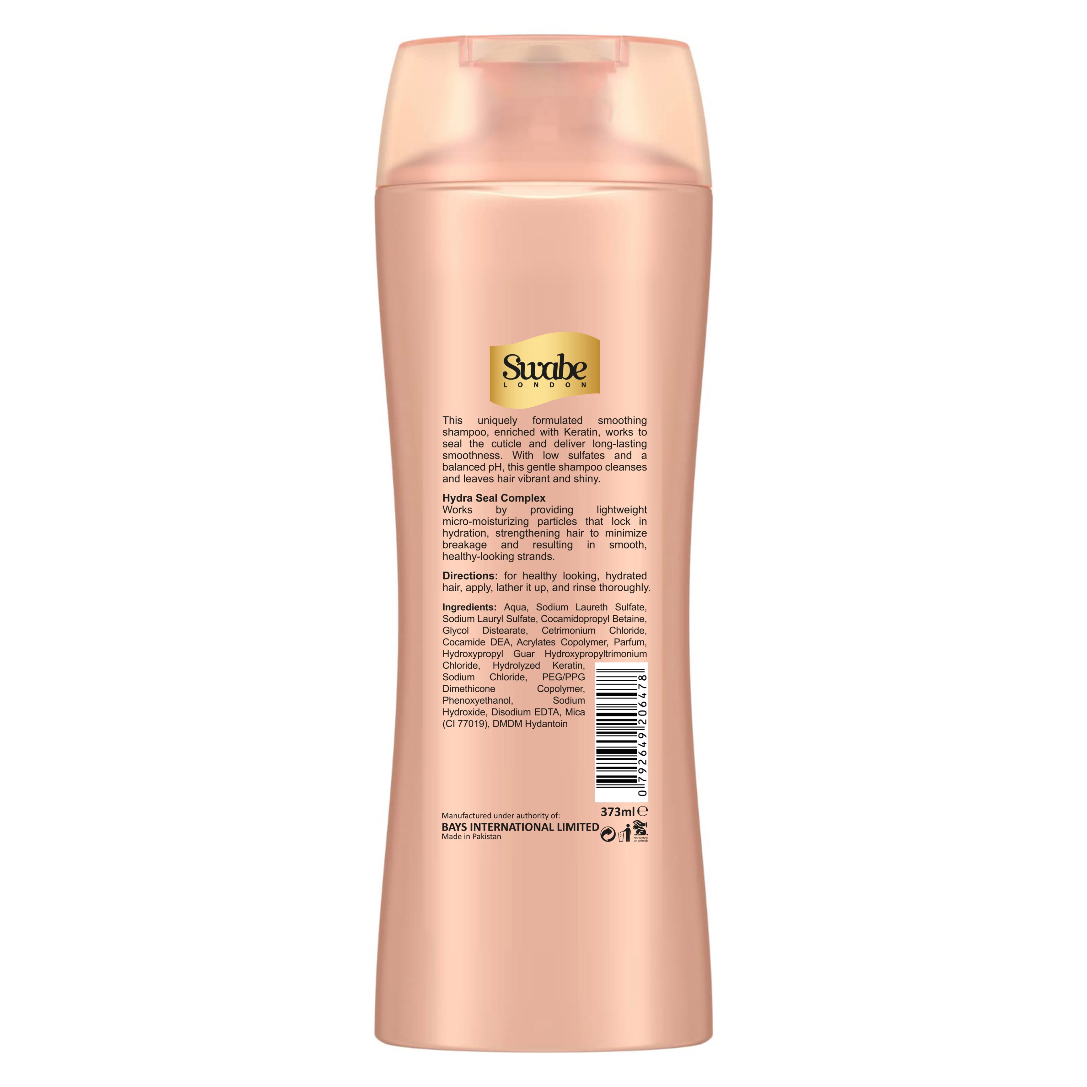 Say goodbye to frizz with Swabe Keratin Infusion Smoothing Shampoo. Designed to smooth rough textures and control frizz, this formula strengthens each strand and improves manageability. Powered by the Hydra Seal Complex, it deeply nourishes hair, leaving it silky, sleek, and easy to style.